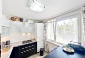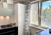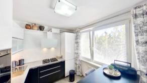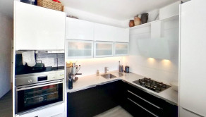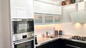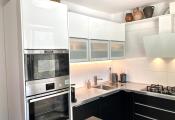 Kuchyňa s na mieru zhotovenou kuchynskou linkou so vstavanými spotrebičmi zn. Whirlpool, je rovnako ako obývacia izba s výstupom na balkón orientovaná na juh.