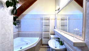 Päť plnohodnotných izieb, obývačka s krbom prepojená s kuchyňou a jedálenským kútom, práčovňa, technická miestnosť, pracovňa, samostatná podkrovná miestnosť (ako šiesta izba), šatník, dve priestranné kúpeľne, sprchový kút, vaňa, tri toalety, garáž s prípojkou na nabíjanie elektromobilu, veľká terasa, altánok na posedenia s priateľmi, ale aj príjemní a milí susedia tvoria a dotvárajú miesto, kde sa budete cítiť od začiatku ako doma.