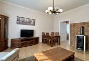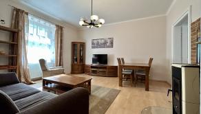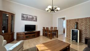 Byt sa prenajíma zariadený, zimnú atmosféru perfektne doplní funkčná piecka v obývacej izbe.