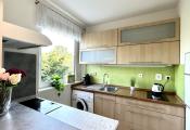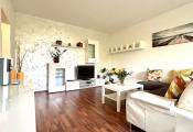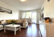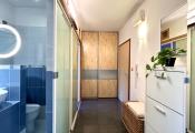 Výborné riešenie vstupu do kúpeľne a spálne dverami s posuvným systémom, kompletné vybavenie bytu vrátane kompletného kuchynského vybavenia, kvalitných spotrebičov (práčka ARDO , sušička AEG, chladnička Elektrolux, ale aj TV či kávovar DeLonghi) sú určite bonusom a pre budúcich majiteľov možno rozhodujúcim činiteľom vďaka ktorému ocenia, že skutočne ponúkame aj niečo naviac.