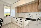 Hlavnú dennú časť nehnuteľnosti tvorí kuchyňa, zariadená s linkou na mieru, prepojená s obývacou izbou.