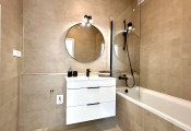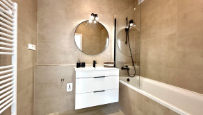 Vykurovanie je prostredníctvom radiátorov, s podlahovým vykurovaním v kúpeľni.