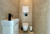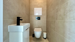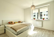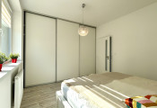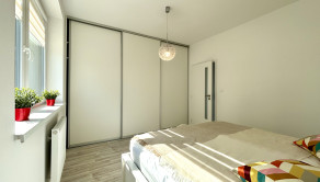 Z chodby je vstup do samostatnej toalety so závesným WC, samostatnej kúpeľne s vaňou a tiež spálne vybavenej manželskou posteľou a rolldor skriňou na mieru.