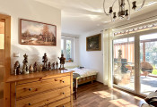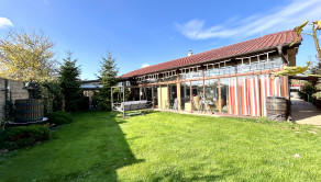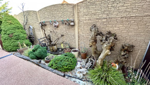 Je v skvelej technickej kondícii, s peknou udržiavanou záhradou, s okrasnými drevinami a dvoma príjemnymi prekrytými terasami.