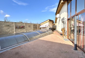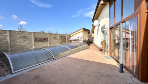 Vonkajší prekrytý bazén s protiprúdom a ďalšími technickými vychytávkami bol navrhnutý v blízkosti terasy s murovaným grilom, kde sa Vám zaručene zmestí celá návšteva večernej garden party.