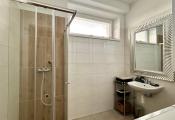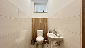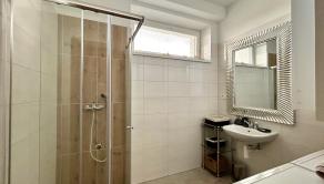 Kúpeľňa je so sprchovým kútom, umývadlom, vrátane práčky a sušičky. WC je samostatné.