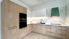 Kuchyňa s kuchynskou linkou je vybavená všetkými spotrebičmi.