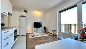 Výhodou je že v byte doteraz nikto nebýval, všetko zariadenie, elektrospotrebiče, vrátane kuchynskej linky je nové, nepoužívané, bez žiadneho opotrebenia.